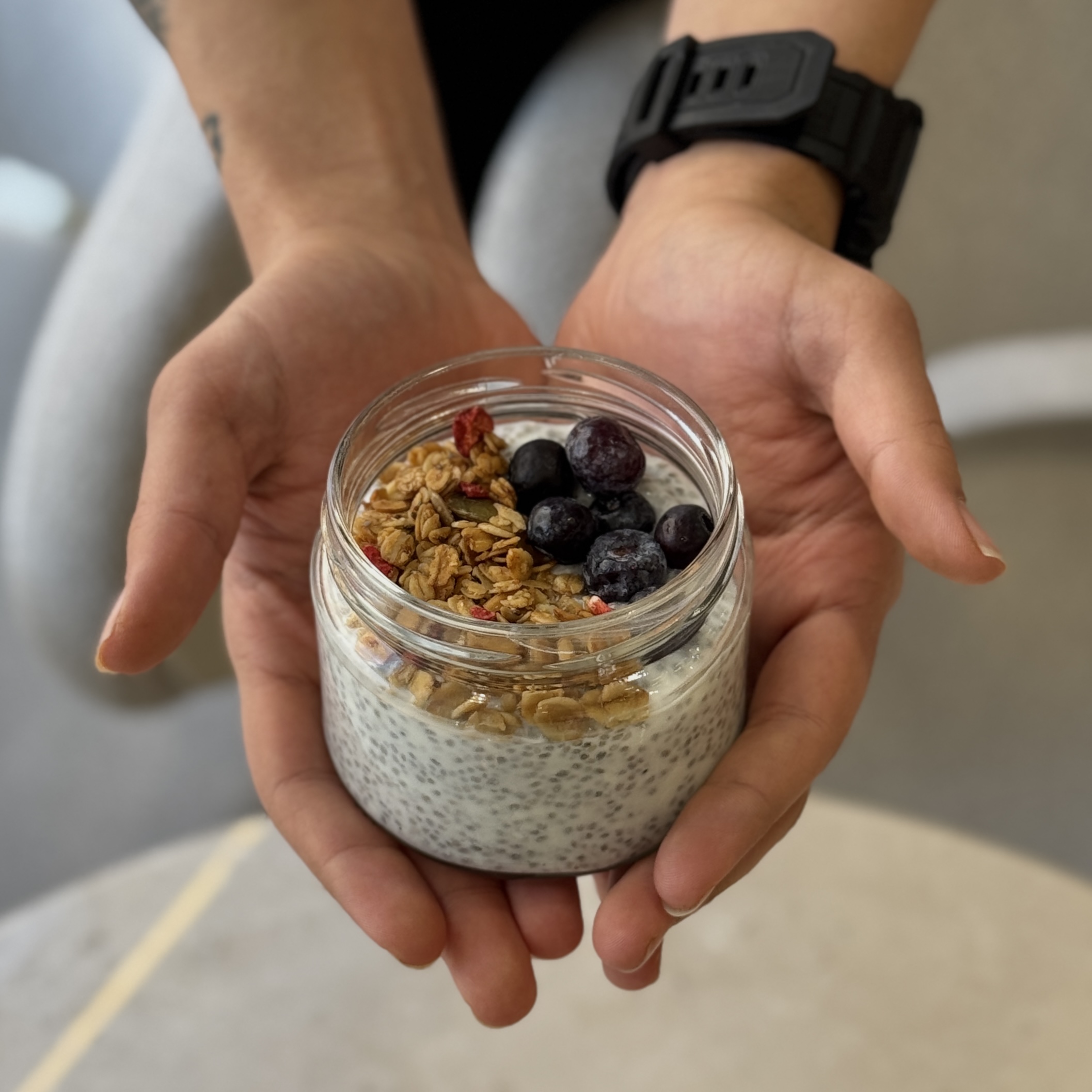 Kakao,yoğurt,chia tohumu, süt, bal