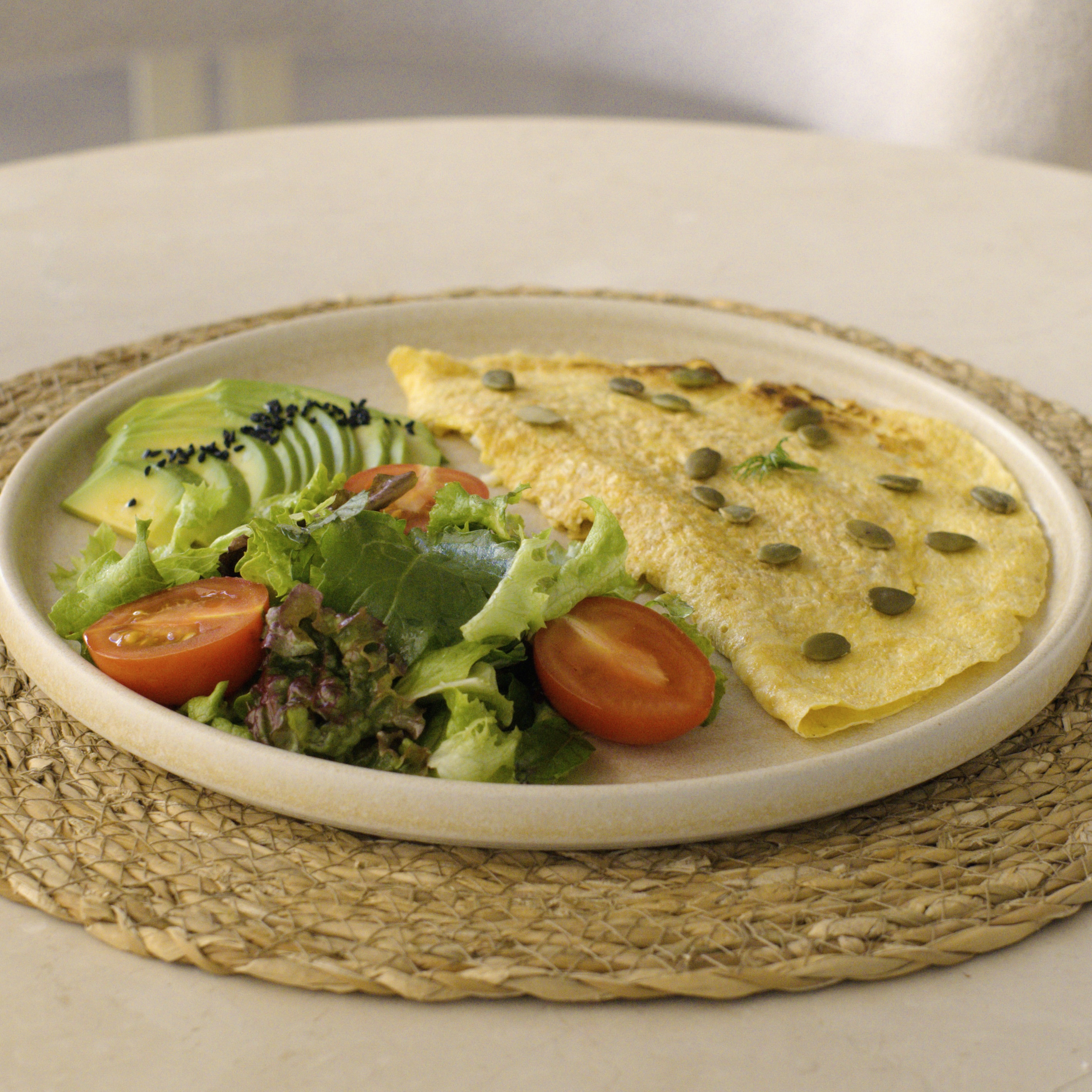 yulaflı çırpılmış yumurta ( 2 adet), dilimlenmiş avokado, mevsim salata, çeri domates